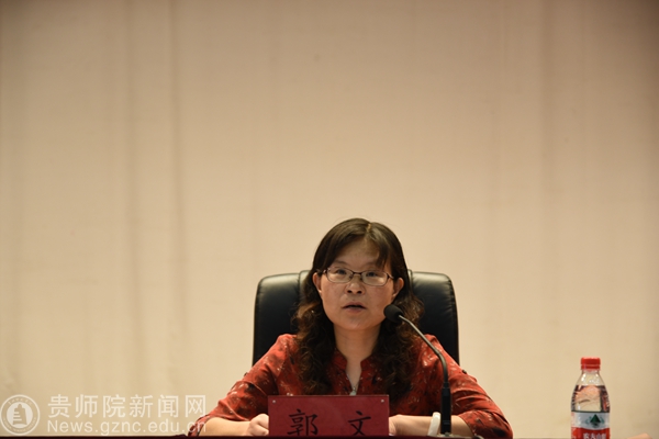 最后,副校长郭文讲话。讲话中,对2018届毕业生实习工作提出四点要求:第一、提高认识,精心组织,提高应用型人才培养质量。第二、高度重视,密切配合,全力以赴做好实习各项工作。第三、落实责任,确保安全,保证实习工作顺利进行。第四、坚定信念,严格要求,圆满完成实习任务。