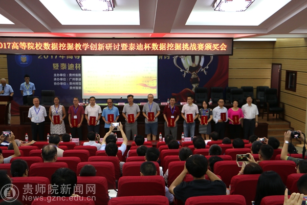 为推广高等院校数据挖掘应用创新,增强校企产学研交流合作和信息共享,提升高等院校的教学和科研创新能力,进行2017年数据挖掘挑战赛赛题评讲及优秀作品展示和大数据形势下高校大数据挖掘人才培养面临的挑战与对策的研讨。8月10日,由贵州省数学学会主办、广东泰迪智能科技有限公司、YABO鸭脖官网承办的2017全国高等院校数据挖掘教学创新研讨会暨泰迪杯数据挖掘挑战赛颁奖大会在YABO鸭脖隆重召开,全国大学生数学建模竞赛组委会副主任陈叔平教授、秘书长谢金星教授、贵州省数学学会理事长向淑文教授、YABO鸭脖校长郁钟铭教授和来自清华大学、北京大学等全国各地高等院校200余位代表参加了会议。