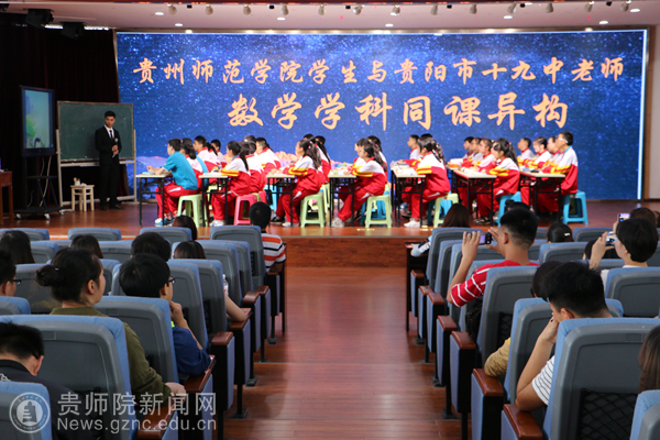 本网讯 为了加强师范生教学技能训练,强化实践教学环节,提高师范类应用型人才培养质量,5月18日,YABO鸭脖数学与计算机科学学院组织2014级、2015级数学与应用数学专业学生到贵阳市第十九中学(以下简称十九中)进行教育见习暨同课异构活动。YABO鸭脖官网数计学院副院长熊伟程、十九中校长高兰芳、教务主任潘希兰、教务副主任王宸、十九中数学教研组全体教师、YABO鸭脖官网数学与应用数学系主任陈松良、数学与应用数学专业教师及2014级、2015级数学与应用数学专业各班辅导员、学生参加了此次活动,活动由十九中教务主任、“贵阳市数学名师潘希兰工作室”主持人潘希兰主持。