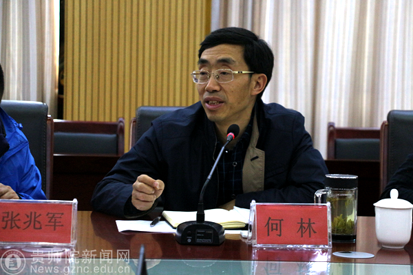 何林在讲话中,首先肯定了艺术学院在科研建设、艺术创作和教学等方面取得的成绩,同时指出,学院发展一定要有目标、任务驱动,学院班子成员要有长远眼光,超前谋划的意识。他对艺术学院提出三点要求:一是班子成员要齐心协力,共同协作,主动想法子,创造性地开展好学院工作;二是把艺术学院特色和地方资源优势结合起来,寻找学科科研与办学特色,找准以适应贵州发展需要的人才培养模式,开展好与地方对接和行业对接的舞蹈、音乐、美术项目,提高教师的创作水平的同时提高学生的艺术创作能力;三是要注重学科建设,以开放的心态,结合艺术学院的艺术之星技能大赛等大型活动平台扩大学院的美誉度与知名度。