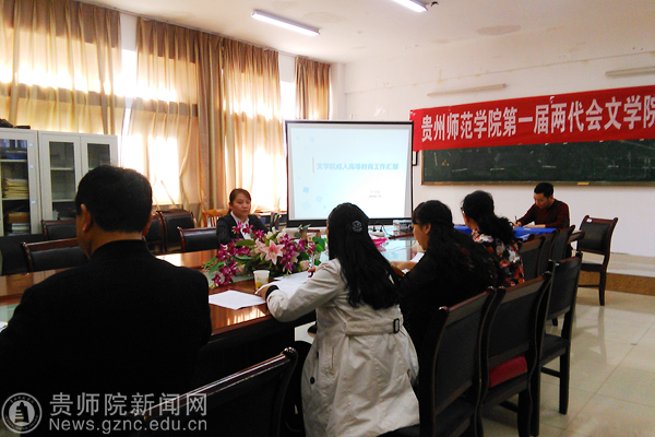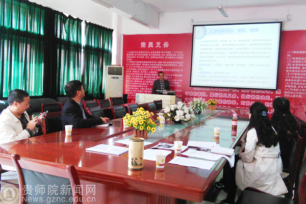 物电学院周筑文院长用PPT向督查组介绍成高工作