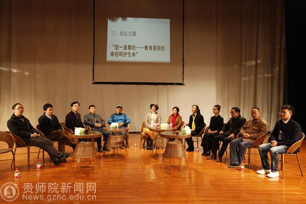 论坛特别邀请了中央数字电视摄影频道《贵人善行》、《大孝贵州》栏目的艺术总监王瑛及导演陈是成作为特邀论坛嘉宾。贵阳三十六中校长王强,副校长杨莎及全省骨干班主任培训国培班的全体成员参加会议。校党委宣传部副部长孙筑萍、孙秀华,艺术学院党委书记付巧,艺术学院党委副书记朱晨刚,继续教育学院党委副书记王刚,马列部副主任秦红平等负责人及艺术学院老师代表参加本次活动。艺术学院党委书记付巧、宣传部老师全奕以及艺术学院学生景雷、敖自江主持论坛。