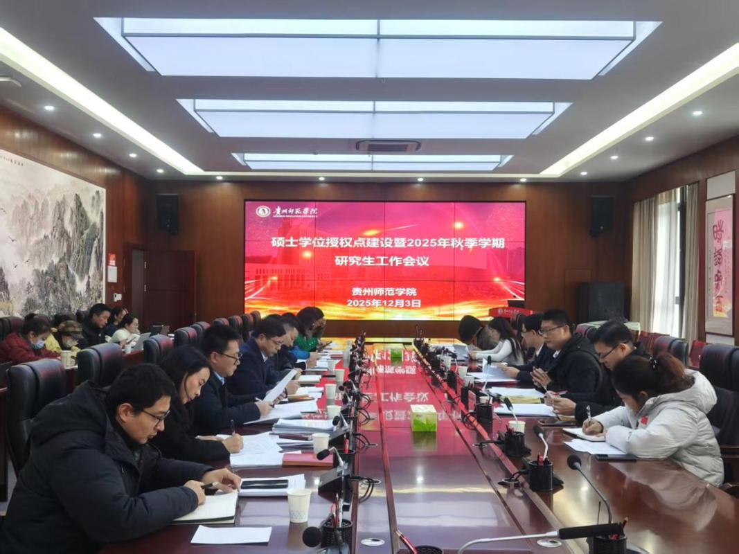 本网讯 12月3日下午,学校硕士学位授权点建设暨2025年秋季学期研究生工作会议在信息楼二楼会议室召开。校党委常委、副校长潘运出席会议,各硕士学位授权建设点负责人及成员、各培养单位主管研究生工作的院领导及相关工作人员、研究生院全体工作人员参加会议。会议由研究生院负责人钱长江主持。