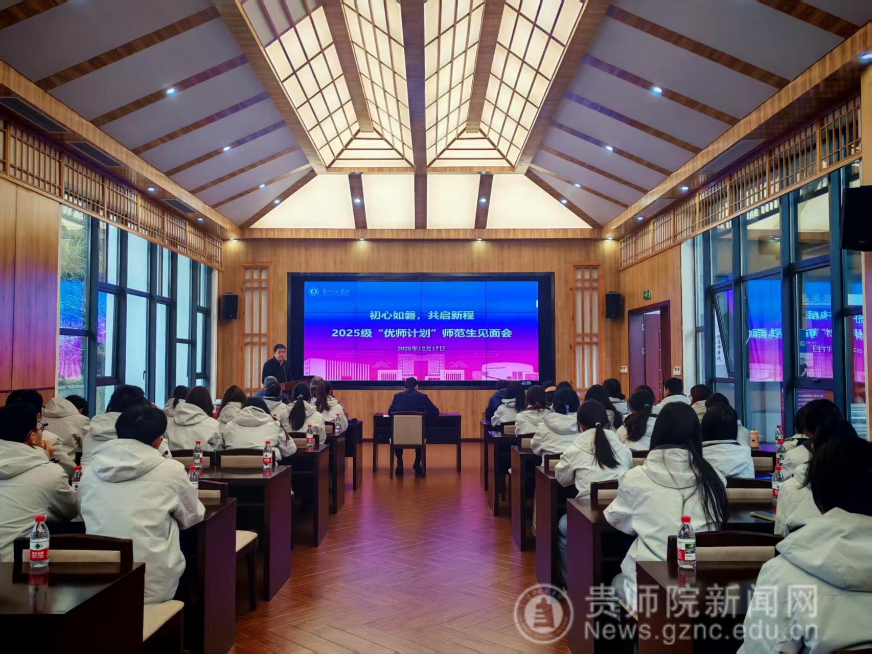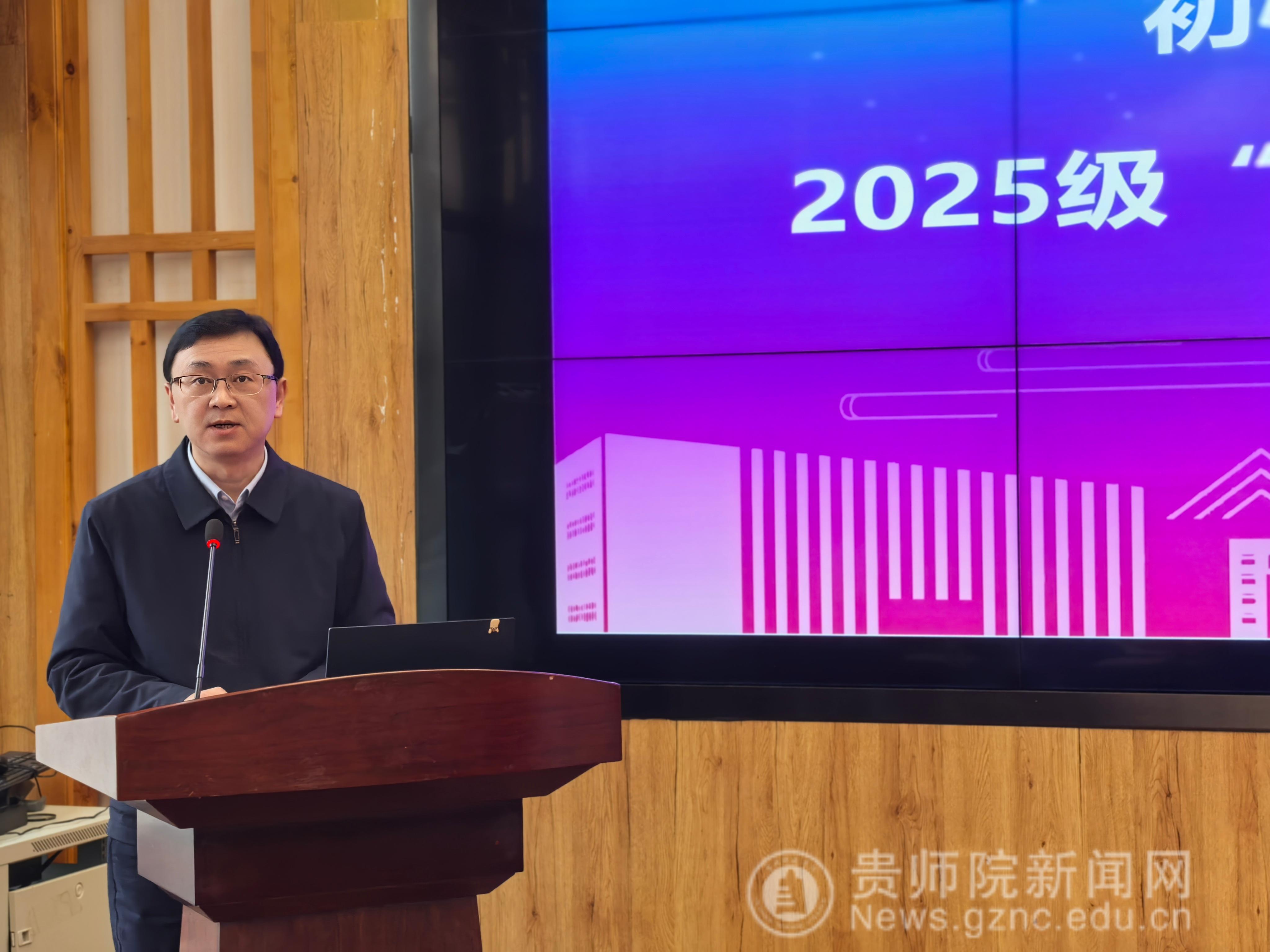 潘运在致辞中代表学校向全体“优师计划”新生表示欢迎,并阐述了“优师计划”对贵州基础教育发展的重要意义。他指出,贵州正处在从“教育大省”迈向“教育强省”的关键时期,迫切需要一批“下得去、留得住、教得好、有发展”的基层教师。潘运勉励同学们要将个人成长的“小我”融入贵州教育发展和乡村振兴的“大我”之中,并对大家提出三点期望:一要深植乡土情怀,主动了解贵州省情教情,厚植对贵州土地和孩子的感情;二要锤炼育人本领,努力成为专业知识扎实、教学能力突出、适应乡村需要的复合型教师;三要勇担振兴责任,立志做学生成长的引路人和乡土文化的传承者。他叮嘱同学们珍惜时光,学会读书、思考与创新,以未来优秀教师的标准要求自己,为投身贵州基础教育奠定坚实基础。