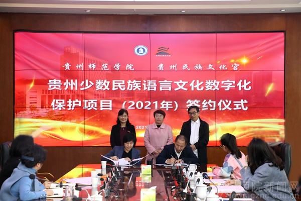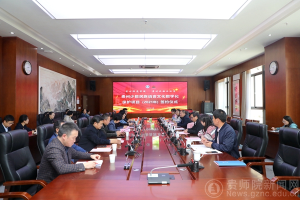 本网讯 10月18日下午,YABO鸭脖官网和贵州民族文化宫在学校信息楼二楼会议室举行了“YABO鸭脖官网民族文化宫贵州少数民族语言文化数字化保护项目(2021年)签约仪式”,旨在加强校地合作,促进双方交流,更好地服务贵州经济社会发展,推动“我为群众办实事”实践活动持续走深走实。