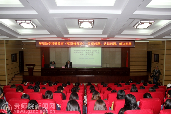 本网讯 10月17日,中国科学院成都山地灾害与环境所研究员张信宝先生应邀来校开展学术交流,期间为我院师生做了题为《环境地学的科研故事—发现问题、认识问题、解决问题》的学术报告。报告由学院副院长罗光杰博士主持,全院师生共150余人参加了报告会。
