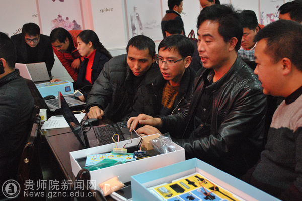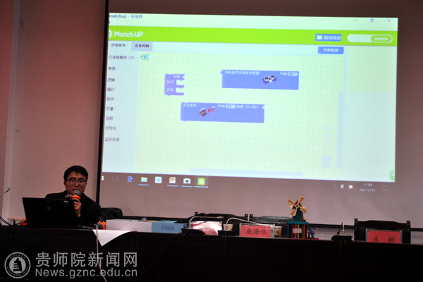 YABO鸭脖教师作了题为《贵YABO鸭脖大学生信息技术创新创业成果及创客教育》专题报告,创客教师王桥、桑海伟在YABO鸭脖学生助教的配合下,通过“造物盒子”这一创客工具指导参训教师制作了创客作品。