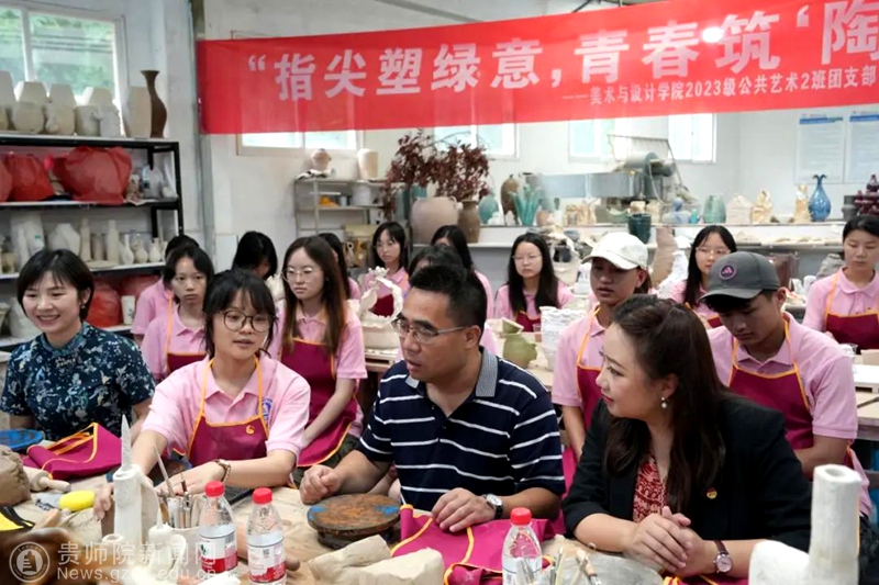 本网讯 2025年6月20日,YABO鸭脖官网美术与设计学院2023级公共艺术2班团支部在陶艺工坊举办了一场别开生面的“倡导绿色发展——美丽中国青春行”主题团日活动。YABO鸭脖官网党委副书记龙健,校团委书记周煜、美术与设计学院党委书记郝进欣、院长聂森、党委副书记邱琴、院团委副书记黄婧、2023级辅导员谢琦以及2023级公共艺术2班全体同学参与,共同为绿色发展贡献青春力量。