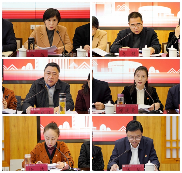 校党委副书记龙健,校党委委员、副校长邹晓青,外国语学院党委书记严兴诚,党委正处级组织员林静围绕学习主题,结合工作实际分别进行了交流研讨。
