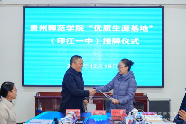 会上,张金勇介绍了印江一中的办学情况;双方签订《优质生源基地合作协议书》,并举行“优质生源基地”授牌仪式。随后,与会人员进行了交流发言。