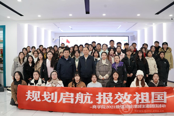 本网讯 为扎实推动团员和青年主题教育走深走实,切实引导广大团员和青年坚定不移听党话,跟党走,将个人职业规划与国家建设、社会和谐、民族复兴紧密结合。12月18日,校党委书记石培新出席商学院2021级信用管理班团支部在大学生事务中心开展的“规划启航 报效祖国”主题团日活动,校党政办公室主任孙家家、商学院党委书记黄丹、党委副书记张静、团委副书记寇燕、2021级信用管理班辅导员梁敏及2021级信用管理班全体同学参加本次活动。