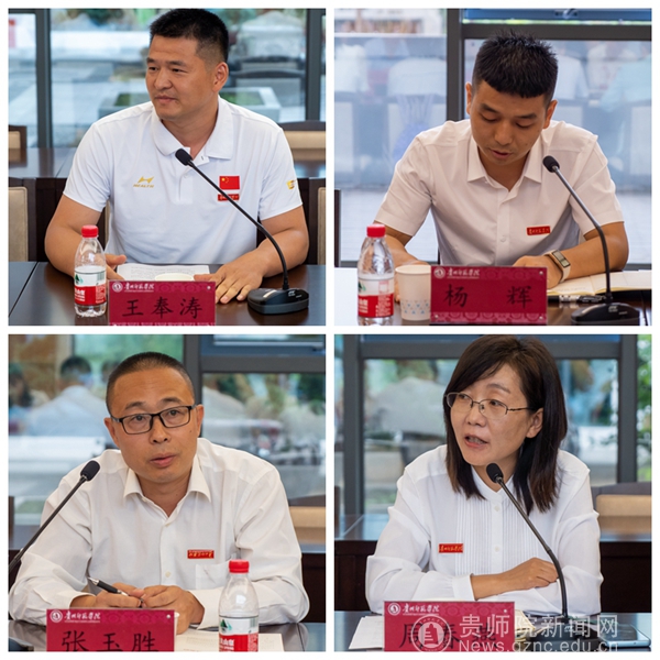 印山红烛、师德标兵代表体育学院王奉涛、美术与设计学院杨辉老师、马克思主义学院张玉胜老师、教育信息网络中心周春燕老师,围绕自己的工作进行了发言。优师计划学生代表马克思主义学院王猛、物理与电子科学学院蒋孟原、文学与传媒学院周星结合自己的学习分享汇报了自己的感悟体会、对老师的感恩之情以及自己的“教育强国”青春梦想。