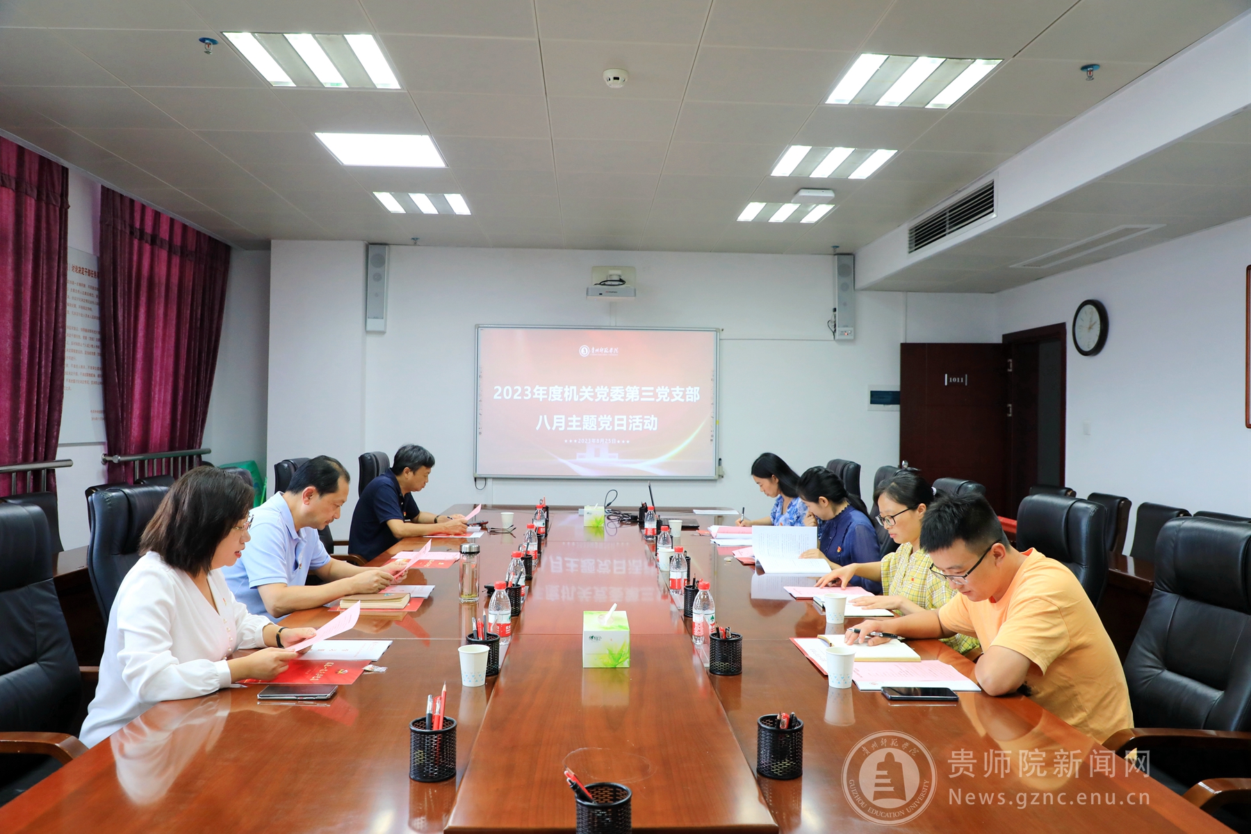 本网讯 为深入开展学习贯彻习近平新时代中国特色社会主义思想主题教育,教育引导支部党员统一思想、统一意志、统一行动,巩固主题教育学习成果,以新气象新作为推动学校高质量发展。8月25日下午,机关党委第三党支部在信息楼1011会议室举行8月主题党日活动。校党委书记石培新同志以普通党员身份出席会议。支部党员参加会议,会议由党支部书记薛璞同志主持。