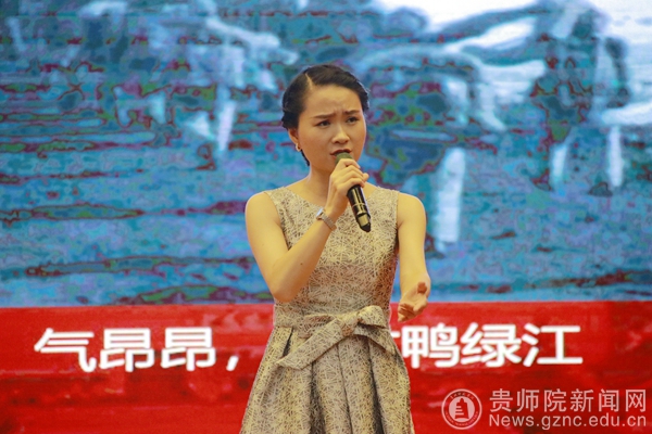 接着唐建荣、王韦韦用动人的歌曲带领师生回顾了中国共产党的百年奋斗史,《国际歌》、《映山红》、《春天的故事》、《奋斗的时代》等等,这些具有革命性、战斗性、群众性的红歌,凝聚着中华民族由危亡走向新生继而迈向辉煌的厚重历史,记录着中国共产党领导中国革命、建设、改革、奋进新时代的恢弘历程,是中国共产党人红色基因和中华民族宝贵精神财富的重要组成部分,蕴含着丰富的时代记忆和精神密码,穿越时空而历久弥新。