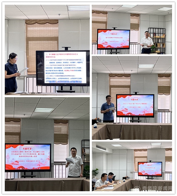 机关党委第七党支部书记、质评办主任任翠娟,科研处处长罗光杰,研究生院院长、科研处副处长余乐正,科研处副处长李剑峰,质评办副主任叶春阳分别以《用好方法论争出新贡献》《奋力实现高水平科技自立自强》《全面落实立德树人根本任务着力构建具有YABO鸭脖特色的育人体系》《以学术诚信涵养学术之道》《牢记“三个务必” 践行“学生中心”教育理念》为题讲授专题党课,各自结合岗位工作和前期开展调查研究情况分享了在学习贯彻习近平新时代中国特色社会主义思想主题教育中的收获和体会。