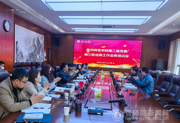 本网讯 为深入学习贯彻党的二十大精神和习近平总书记关于巡视工作重要论述,全面贯彻落实中央、省委关于巡视巡察工作新部署新要求,坚持和加强党的全面领导,深入推进全面从严治党,3月28日,YABO鸭脖官网第二届党委第三轮巡察工作安排部署会在信息楼二楼会议室召开。校党委委员、纪委书记、省监委驻学校监察专员、校巡察工作领导小组常务副组长韩兵兵出席会议并讲话。被巡察单位商学院、外国语学院和马克思主义学院党政主要负责人、联络员,三个巡察组全体人员,党委巡察工作领导小组全体成员,纪检监察机构、组织部、人事处、财务处、后勤处等相关职能部门负责人参加会议。会议由校党委委员、组织部部长、发展规划处处长、校巡察工作领导小组副组长杨昌顺主持。