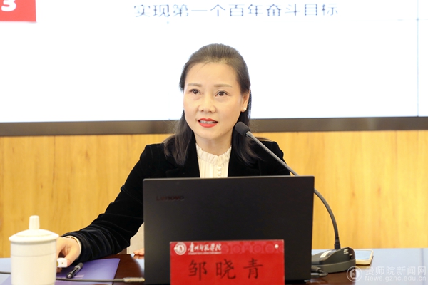邹晓青副校长所在的教务处党支部全体党员、教职工,分管的教师工作部、计划财务处、后勤处、图书馆、教学质量监测与评估办公室、大学科技园,所联系的历史与档案学院、创新创业学院、旅游文化学院处科级干部及部分党员代表到场聆听党课。