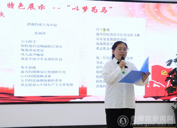 为进一步理解本次团日活动的主旨,同学们带来了以“清澈的爱,只为中国”为主题的节目。别开生面的情景剧《与光同行》、饱含深情的英雄故事分享,精心准备的手抄报展示、气势磅礴的朗诵、独具汉语言文学专业特色的原创诗歌分享……虽形式不同、内容各异,但每个节目都体现出青年的拳拳爱国之心。