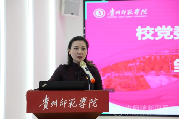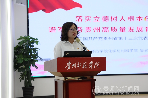 本网讯 5月5日,学校召开思政队伍学习贵州省第十三次党代会精神分享会。校党委委员、副校长邹晓青参加分享会,省党代会代表、化学与材料学院辅导员吴光梅分享了省第十三次党代会参加感想。分享会由学生工作部部长刘红玲主持。