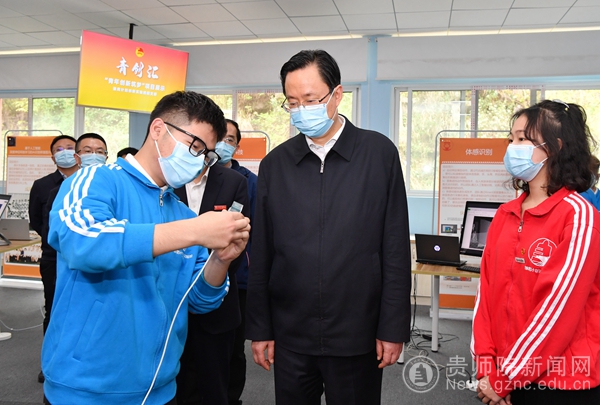 蓝绍敏来到贵州教育史馆和学校印山书院,认真了解办学理念和学科特色,对学校几十年如一日深耕基础教育的发展历程给予肯定,希望立足特色、厚植优势,在新起点上为贵州教育高质量发展作出新贡献。走进创新创业学院和教师职业技能实践实训基地,蓝绍敏观看了民族声乐教育、留守儿童“星跳”公益、青年创业筑梦、希望工程陪伴行动等项目,与师生们亲切交流,指出要聚焦增强学生创新思维和创业能力,坚持复合式融合式教育发展理念,更好地培双创栋梁、育黔中人才。