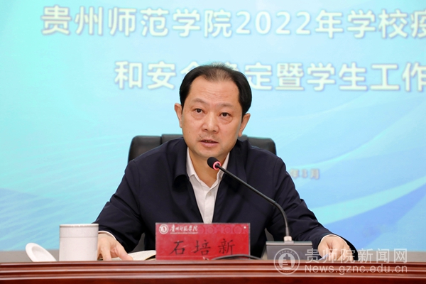 会上,石培新传达了全省安全稳定警示教育大会精神、省应对新冠肺炎疫情防控领导小组办公室关于进一步加强学校新冠肺炎疫情防控工作的紧急通知精神和省教育厅办公室关于做好应对近期新冠疫情的工作提示精神。他指出,2022年是党的二十大和省第十三次党代会的召开之年,是贵州开启新的“黄金十年”的起步之年。值此政治大年,全校上下要深入学习贯彻习近平总书记关于疫情防控工作的重要讲话精神、全国新冠肺炎疫情防控工作电视电话会议精神和全省安全稳定警示教育大会会议精神,坚决落实国务院联防联控机制和省委、省政府以及省委教育工委、省教育厅决策部署,切实做好师生管理和服务各项工作,着力营造常备不懈的秩序环境、孜孜不倦的学习环境、风清气正的政治环境,维护学校的安全和稳定。
