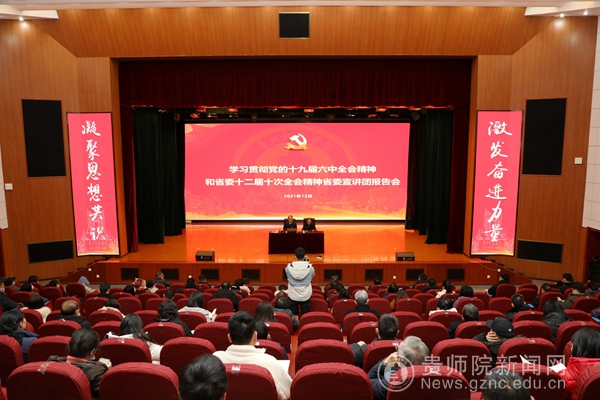 本网讯 12月27日,学习贯彻党的十九届六中全会精神和省委十二届十次全会精神在YABO鸭脖官网逸夫楼演播厅举行,省委宣讲团成员、贵州师范大学党委书记肖远平教授作宣讲报告。
