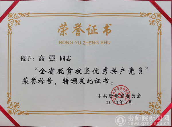荣获全省脱贫攻坚优秀共产党员荣誉称号