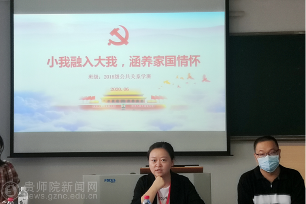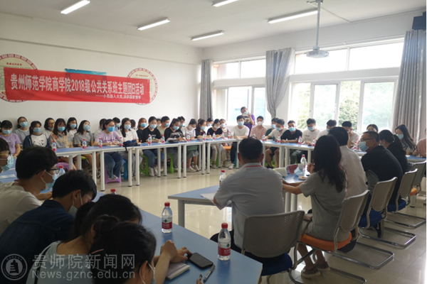此次活动由王红都主持。首先,18级公共关系班班长陈禹彤介绍了班级这两年的发展情况以及特色亮点的系列活动。如:组建导师组、学习活动、实践活动、策划公关巡讲大会、参与营销策划大赛及数博会志愿者等相关活动,得到了余维祥的及各位老师的肯定和鼓舞。紧接着,余维祥向同学们分享了作为人大代表参加两代会的感想,感叹中国经济发展迅速、整体形式向好的一面发展。余维祥鼓励同学们,要勤学上进,在这个大好的时代加倍努力,为家乡为国家尽职尽责,发扬新时代青年的有为与担当,培养家国情怀。同学们备受鼓舞。