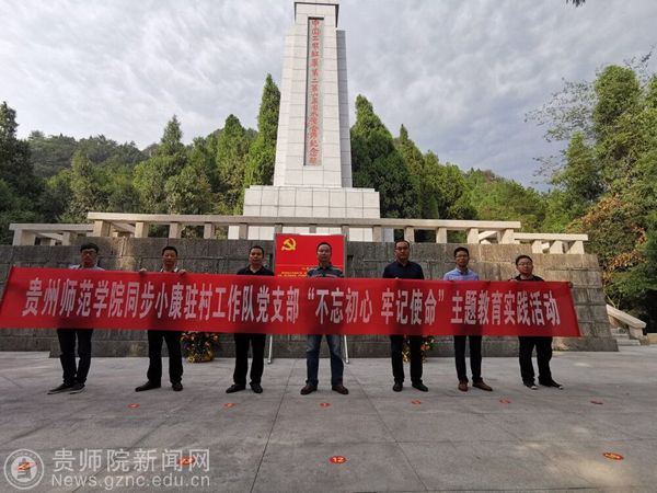 本网讯 在全校扎实开展“不忘初心、牢记使命”主题教育之际,9月25日下午,YABO鸭脖奋战在脱贫攻坚一线的同步小康驻村工作队党支部7名党员,在队长熊德永、支部书记干正洋的带领下,到印江自治县木黄镇开展“守初心 担使命”革命传统教育,缅怀革命先烈,重温入党誓词,重问入党初心。