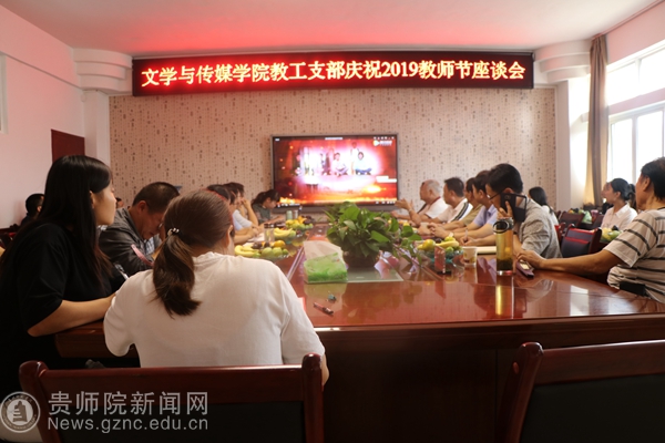 本网讯 9月6日下午,文学与传媒学院教工支部庆祝2019年教师节座谈会在学院会议室召开,学院全体教职工、退休教师代表、老教师代表齐聚一堂,庆祝第35个教师节。校党委书记石培新、校纪委书记邬卫东出席了本次座谈会。会议由文学与传媒学院第一教工支部书记郑颖主持。