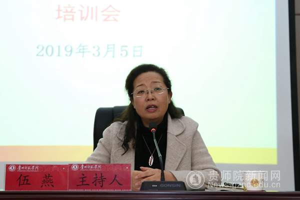 最后,伍燕对培训会进行了总结。她指出,本次培训主题聚焦,目标明确,参会人员学习态度端正,取得了预期效果。针对下步工作,她提出三点要求:一是要深入学习贯彻《中国共产党支部工作条例(试行)》,对标对表持续抓好党支部建设,切实提升党支部建设水平;二是结合贯彻落实《贵州省全面提升基层党建质量三年行动计划(2019-2021年)》和《关于推进全省党支部标准化规范化建设的实施意见》,提高政治站位,落实政治责任,深入推进基层党组织标准化建设,切实提升基层党建工作质量;三是要以党支部组织生活会和民主评议党员工作为抓手,加强组织领导,切实履行主体责任,推动党支部教育党员、管理党员、监督党员的职责落实到位,推动党内政治生活严起来,党员教育管理严起来,切实提升党支部的组织力。