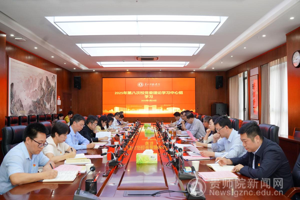 本网讯 为深入学习贯彻习近平总书记关于教育的重要论述,准确把握新时代意识形态工作的总体要求,持续巩固拓展党史学习教育成果。9月29日下午,学校在信息楼二楼会议室举行2025年第八次校党委理论学习中心组学习,校党委中心组成员出席会议,校长助理刘海江及各党群部门负责人列席会议,校党委书记战勇主持会议并讲话。