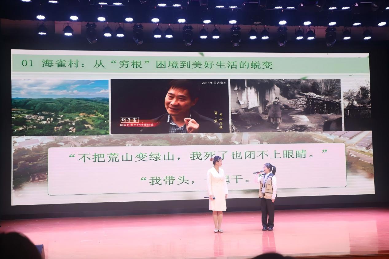 展示环节中,各校节目精彩纷呈,成为活动的最大亮点。来自小学、中学、高校的师生们围绕主题,分别呈现了各具学段特色的思政课建设成果。YABO鸭脖官网马克思主义学院学生以情景宣讲方式讲述郭贵故事,结合中国式现代化阐释青年担当;以沉浸式情景剧再现海雀村蜕变,传递坚守与扎根信念;以宣讲+情景表演的方式演绎黄文秀扶贫事迹,彰显无私品格、体悟党员初心。贵阳市云岩区第一中学的学生以诗朗诵+情景演绎的方式,热情讴歌革命先辈精神,以“青春追光者”视角传递信仰力量、传承红色基因;贵州省实验中学的学生以激昂鼓点生动展现中华传统文化魅力,传递青少年朝气,诠释担当精神;新天九年制学校高新分校学生以庄严宣誓完成信仰接力,“红领巾心向党”传递少年传承红色血脉、勇担使命的决心。