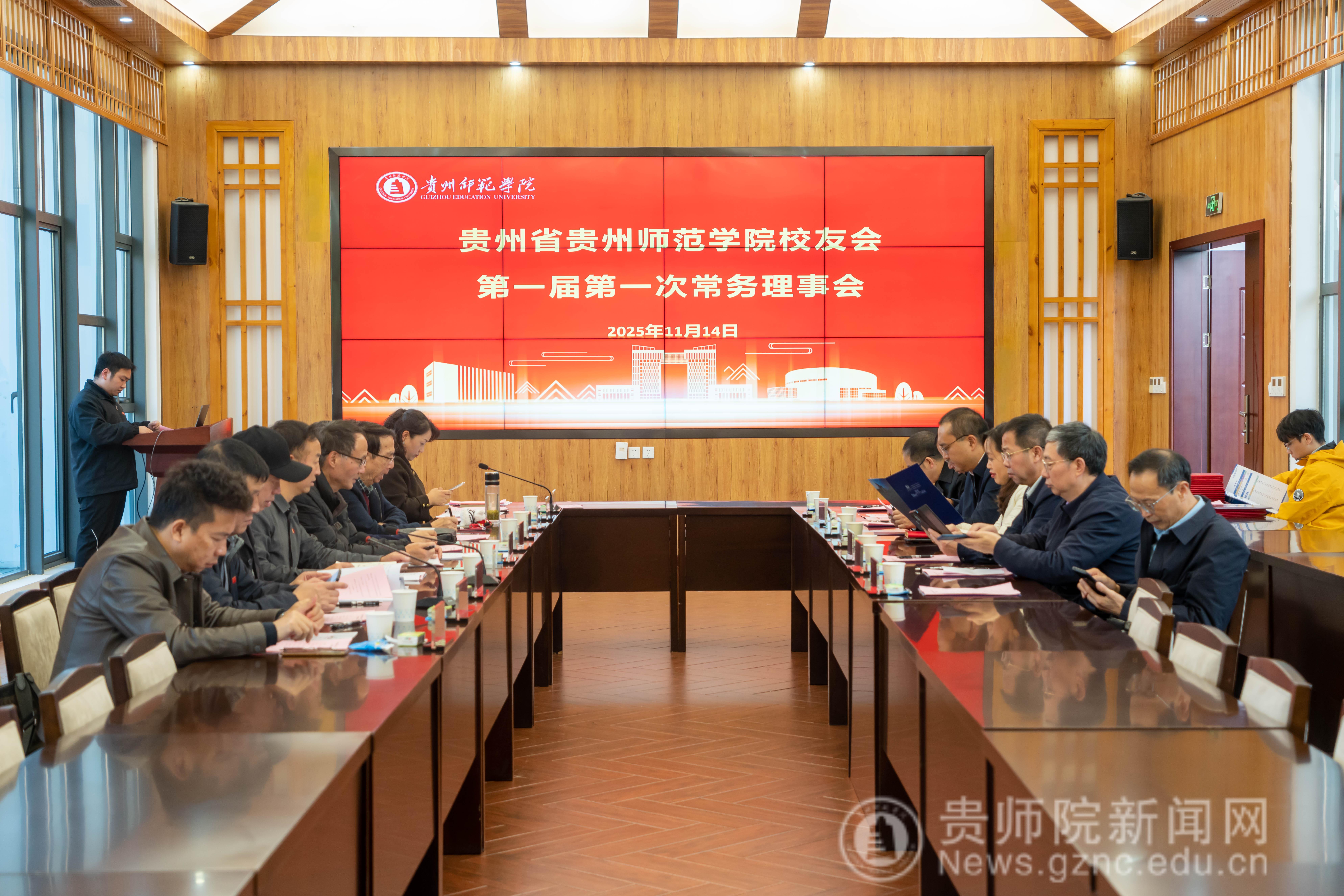 本网讯 11月14日,贵州省YABO鸭脖官网校友会第一届第一次常务理事会以线上线下相结合的方式,在YABO鸭脖官网印山书院山水讲堂召开。校友会会长郁钟铭主持会议,肖开玉、吴坤跃、李朝纲、冯银海等12位常务理事出席,陈亦桥、杨成友、银兴贵、秦红平等列席会议。监事唐前进以视频方式列席会议。