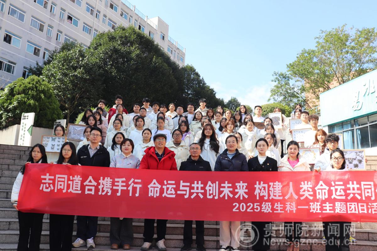 本网讯 11月19日,生物科学学院25级生物科学一班主题团日活动在大学生事务大厅举行,此次活动主题是“志同道合携手行,命运与共创未来,构建人类命运共同体”。校党委常委、副校长(正厅长级)赵守盈出席活动并讲话。校团委挂职副书记舒然,生物科学学院党委书记孙秀华、院长任翠娟、党委副书记王珏、副院长钱长江、辅导员梁涛、团委老师张彩艳等参加了活动。活动由2025级生物科学专业一班团支部书记侯闵泽主持。