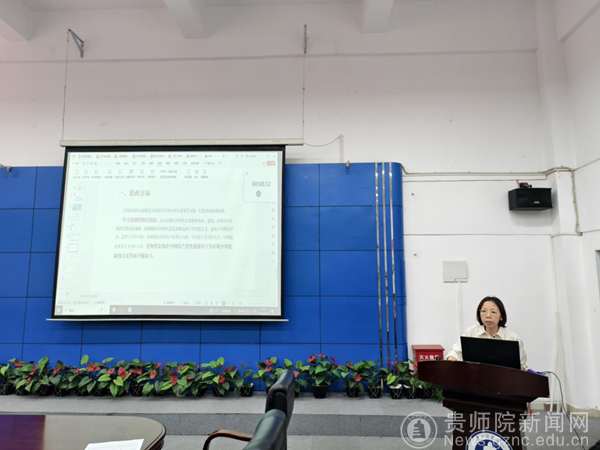 集体备课会阶段,分别由概论教研室刘顺强、郭建文,原理教研室周祎、李云平,纲要教研室雷敏,德法教研室曹颖等6位思政课教师代表,结合任教课程内容和特点,围绕是什么、为什么、怎么办等问题,对“第二个结合”融入思政课教学中的必要性、可能性、路径和方法等进行精彩展示。莫章洁老师从说课要素、说课环节、分析学情、处理教材体系与教学体系、挖掘本土教学资源服务教学、教学体现价值引领、优化教学内容、突出教学重难点等方面进行了精准、全面的指导,对说课、教学提出建设性指导建议。