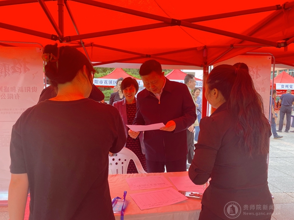 此次专场招聘会得到了各级领导的高度关注,贵阳市委常委、市委秘书长刘立本、市委副秘书长田丽梅、市人社局局长邓辉、市人才服务中心主任刘海、市教育局四级调研员钱味荞、乌当区副区长黄彬等领导在YABO鸭脖校长韦维、副校长邹晓青以及相关职能部门、二级学院负责人的陪同下亲自来到招聘会现场,与用人单位和应聘学生进行亲切交谈,了解询问双方的需求。