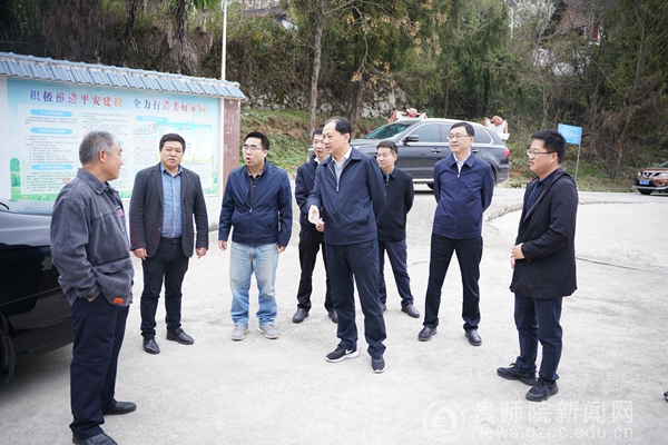 本网讯 正值全国上下学习贯彻落实全国两会精神之际,3月22日,校党委书记石培新一行赴印江县调研乡村振兴对口帮扶工作并看望学校驻村干部。他强调,要深入学习贯彻习近平总书记关于“三农”工作的重要论述和视察贵州重要讲话精神,以全面贯彻落实全国两会精神为契机,发挥高校平台优势及学科优势,为持续巩固拓展脱贫攻坚成果同乡村振兴有效衔接凝聚力量。校党委副书记龙健,校党委委员、副校长潘运一同参加了调研。