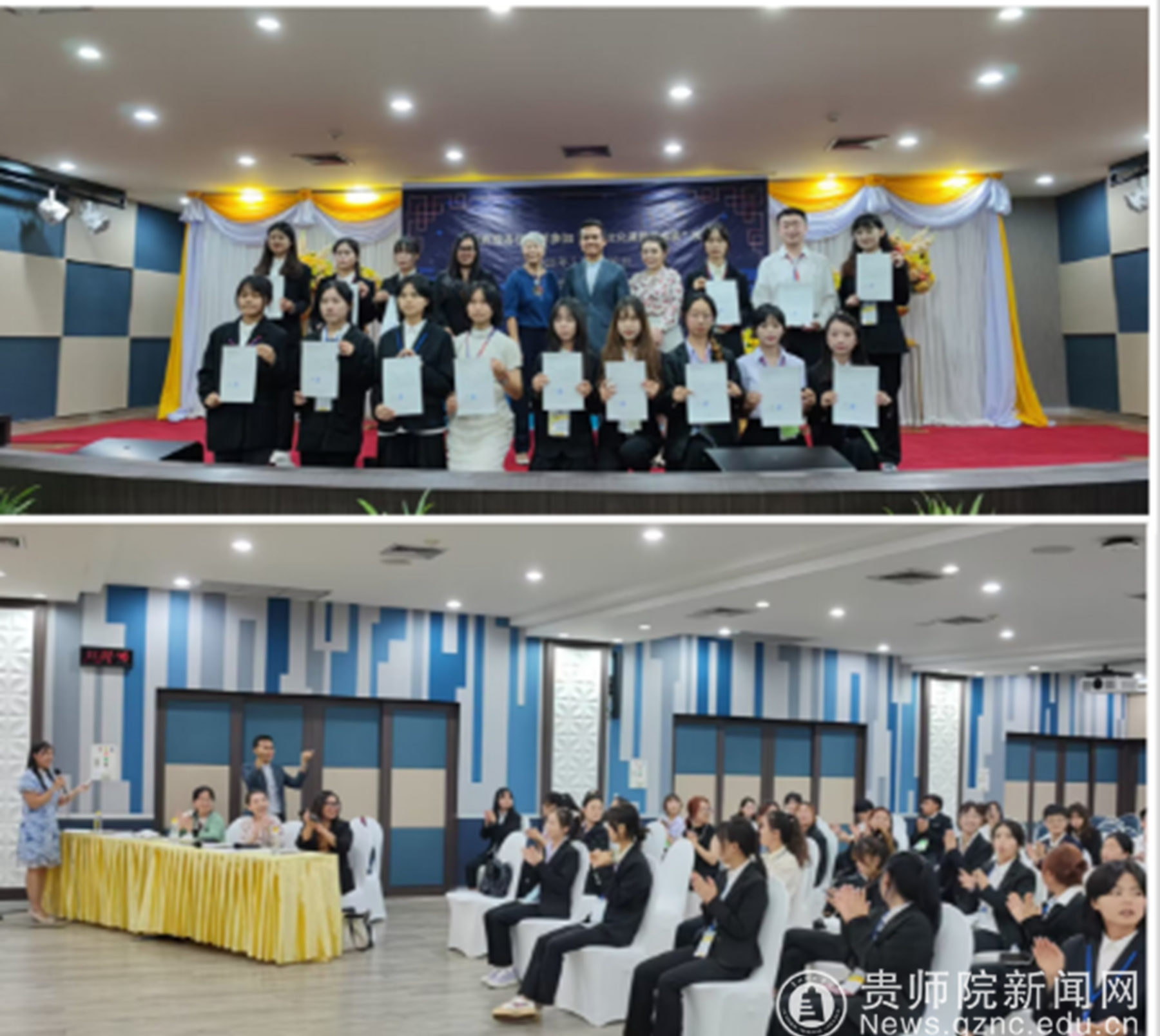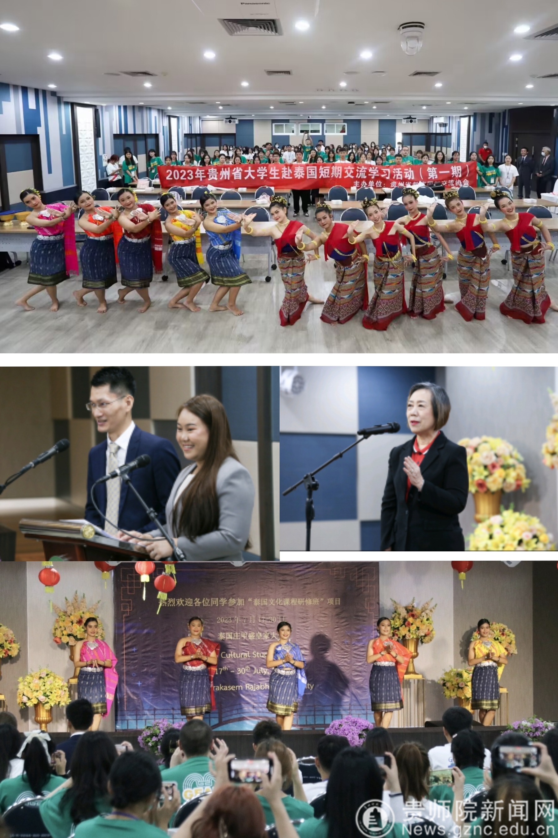 本网讯 2023年7月17日,YABO鸭脖官网的六位同学和来自贵州省其他高校的五十多名学生一同踏上了由贵州省教育国际交流协会组织的“2023年赴泰国名校研学项目”之旅。截至目前为止,所有学生已经安全返回,圆满完成交流学习任务。7月18日,泰国庄甲盛皇家大学举行了隆重的开班仪式,学校校长致辞,泰国学生用富有特色的舞蹈为这次研学之旅拉开了序幕。