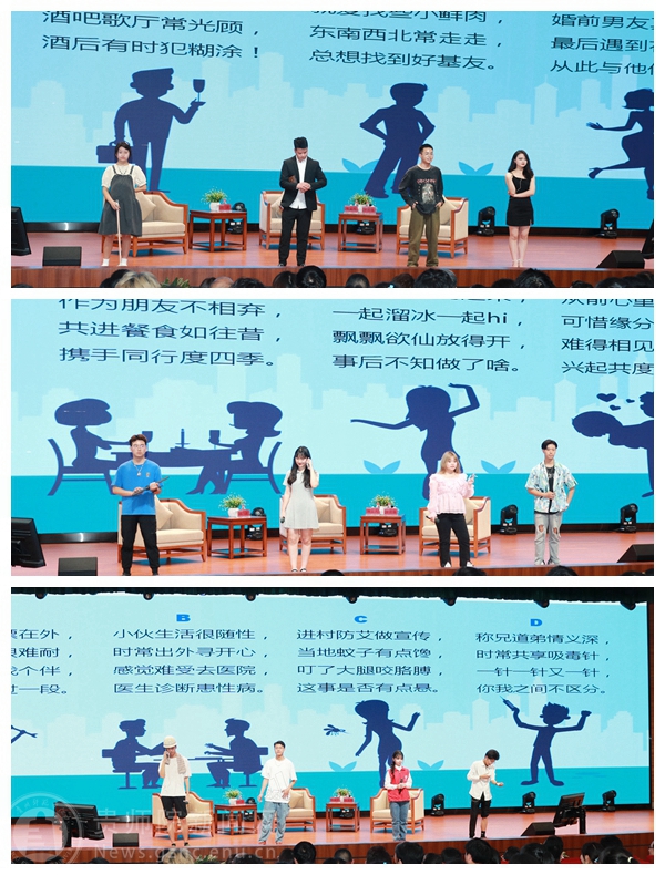 滋养在健康的土壤才会结出天籁,年轻人要承担起社会的责任,给自己的爱一份坚守。在互动访谈环节、鞠萍与韩孟杰、申莉梅进行互动访谈。三位嘉宾讲解了艾滋病的传播途径、感染风险、预防措施、主动检测、积极治疗以及反歧视等艾滋病防控知识,针对大家关注的热点问题进行解答分析,倡导学生提高自我保护意识,养成健康的生活方式,远离艾滋病,为学生们上了一堂生动的防艾公开课,进一步加强了青年学生群体防艾宣传教育的针对性、有效性,提高了学生的艾滋病防控意识和能力。