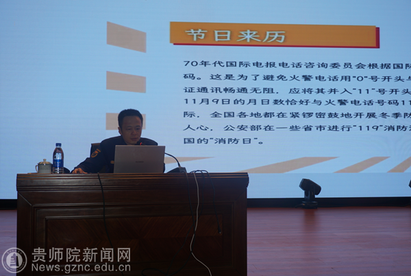 11月25日下午,乌当应急救援大队参谋赵永平应邀到YABO鸭脖为学生开展消防知识培训讲座。赵永平首先向大家讲解了基本的消防知识,涉及火灾发生的原因、火场逃生基本知识等内容,随后为大家列举了典型火灾案例,发人深省,让大家切实体会了具备基本消防安全知识的重要性。