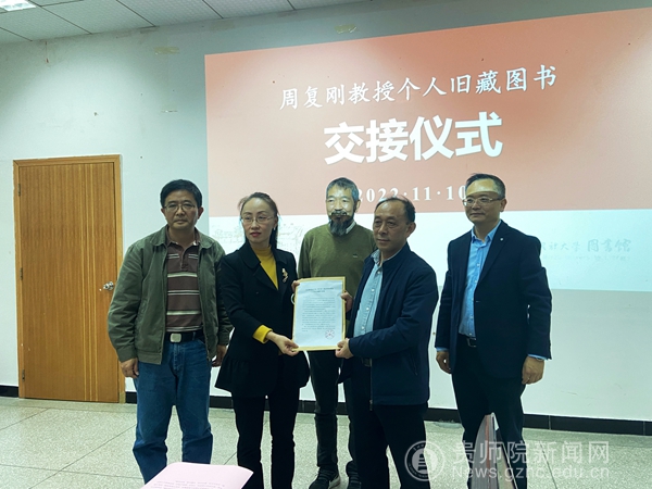 本网讯 11月10日,校党委委员、副校长任洁携图书馆人员一行赴贵州民族大学,与该校图书馆共同举行了YABO鸭脖退休教师周复刚教授个人旧藏图书交接仪式。