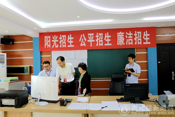 工作人员汇报招生进度情况