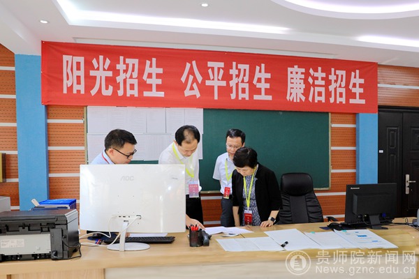 本网讯7月20日下午,校党委书记石培新,校长韦维,校党委委员、副校长熊世桓一行到招生就业指导处检查指导学校高考录取工作。招就处副处长邹旭分别从招生省份、批次、专业、录取人数及生源质量等方面对2022年录取工作进展情况进行了详细汇报。