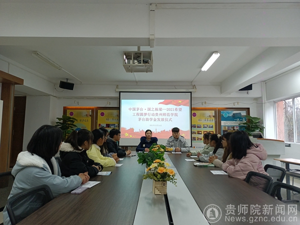 本网讯 12月14日,YABO鸭脖“中国茅台·国之栋梁——2021希望工程圆梦行动大型公益助学活动”助学金发放仪式在大学生活动室举行。校团委副书记伍玲婧、校团委老师马源、资助项目工作人员以及受助学生参加此次会议,发放仪式由马源主持。