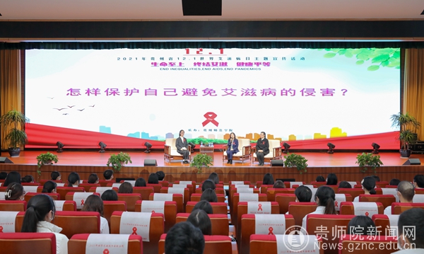 主题活动当天,还举行了“护航青春 助力成长”防艾专家访谈活动,全国学校艾滋病防治专家组成员、YABO鸭脖官网副教授夏卉芳、贵州省疾控中心艾防所郑敏等防艾专家对艾滋病的传播、治疗、预防等一系列问题,与同学们进行互动交流,在风趣幽默的问答中对防治艾滋病知识进行了普及,为现场及网上数万名大学生上了一堂生动有趣的“防艾公开课”,在寓教于乐中教育引导同学们洁身自爱、远离艾滋。贵州电视台实况直播活动现场,全省70多所高校通过电视直播、网络平台等方式观看现场活动,受到社会各界的广泛关注和赞誉。