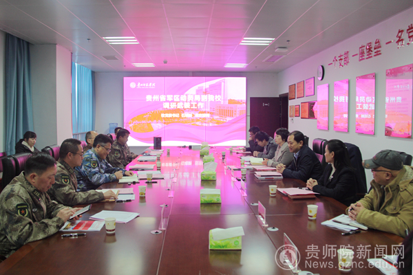 本网讯 12月17日上午,贵州省军区动员局局长、省征兵办主任隋圣陶,在贵阳市警备区政委王文建,乌当区武装部部长、政委等相关人员的陪同下到YABO鸭脖检查指导YABO鸭脖大学生征兵工作并召开座谈会。YABO鸭脖党委书记石培新,党委委员、副校长邹晓青出席了座谈会;学工部(武装部)、保卫处等部门人员,二级学院党委书记、辅导员代表参加了座谈会。本次座谈会由校党委委员、副校长邹晓青主持。