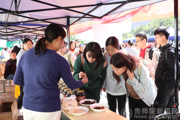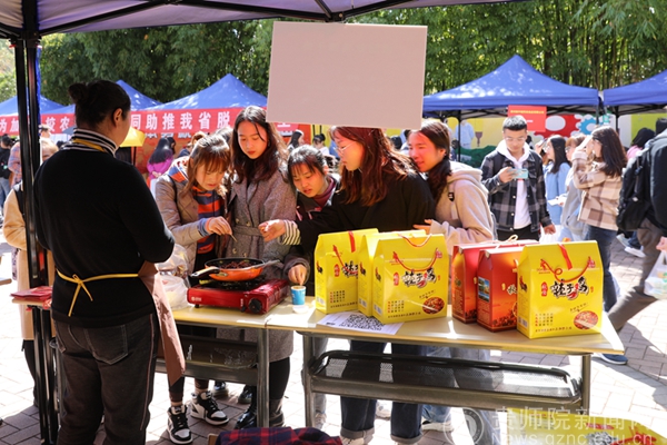 “我买5斤土猪肉,”,“我要50个绿壳鸡蛋!”10月22-23日,YABO鸭脖官网在奋斗广场举行贵州省内农特产品现场展销活动,人声鼎沸的热闹场面好似过年赶集,每个展销台上都摆满了农特产品,各合作公司负责人和贫困户们也是卯足了劲头,争相向过往师生介绍自己的农产品。来自全省的土蜂蜜、干洋芋片、晒干苦瓜、糟辣椒、线干辣椒、红薯粉、红香柚、桔子优质特色农产品,以材质天然、色香味俱全等优点赢得了广大师生的青睐。