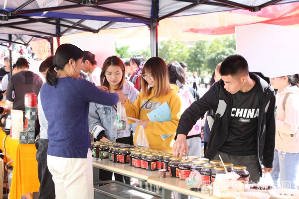 各合作公司负责人卯足了劲头向过往师生介绍自己的农产品
