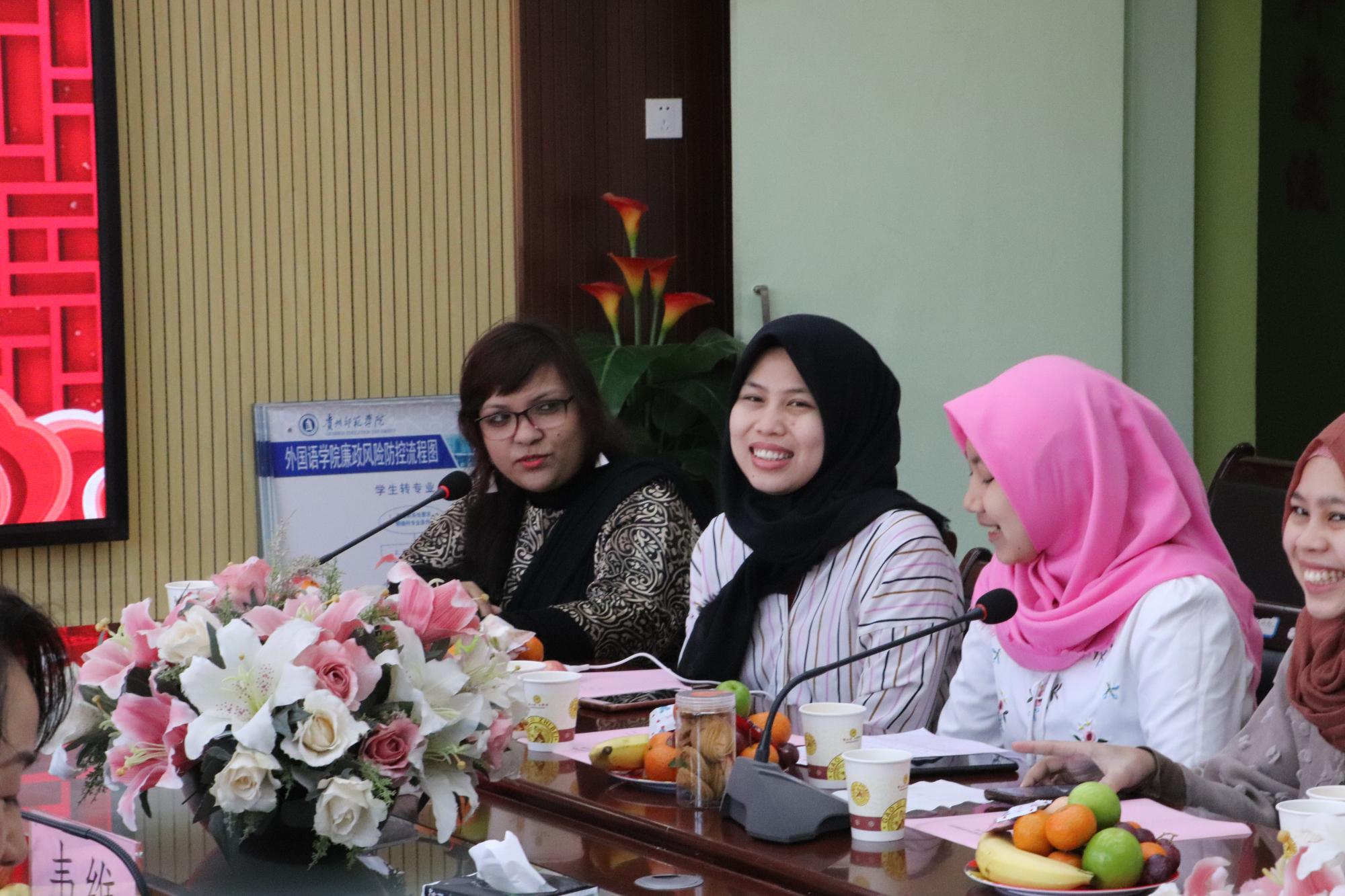 随后,国际交流合作处处长张瑶介绍了近年来YABO鸭脖招收留学生的情况并谈到:春节是中国非常隆重的传统节日,象征着团圆。今天的座谈会更像是一次“家庭聚会”,而我们都是这个大家庭的一份子,大家齐聚于此提前欢度佳节。万艺林和卢静两位老师分别从学生管理和学生活动等方面和大家进行了交流。